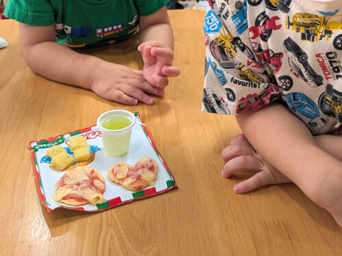 1歳も参加していましたが、作るのは少し難しいため完成品の試食係になっていました(笑)。