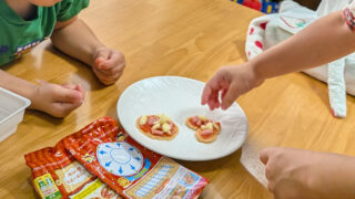 ピザとポテト、ジュースのセットが簡単に作れるキットの「たのしいピザやさん」。水を用意するだけで、本物そっくりのピザセットが簡単に作れます!本格的な味と匂いのピザを作ってみんなで楽しみましょう♪たのしいピザやさんは何歳から遊べる?わが子は大人の指示が通る2歳の頃から「たのしいピザやさん」を一緒に作って遊べました。1歳も参加していましたが、作るのは少し難しいため完成品の試食係になっていました(笑)。たのしいピザやさんの遊び方・注意点説明書に沿って、「たのしいピザやさん」を作って遊びます。テーブルをきれいに拭いて、手を洗ってから作りましょう。