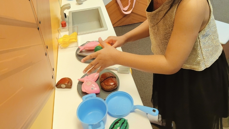 ブロックやごっこ遊びのように、自由に遊びを広げられるおもちゃが活きてきます。